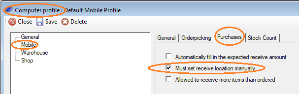 In het profiel is in te stellen dat je verplicht een locatie moet ingeven. Dan kun je de locatie scannen of handmatig ingeven. Als je kiest voor handmatig ingeven, dan kun je op CHANGE drukken en dan verschijnen default de locaties waar het item al ligt.