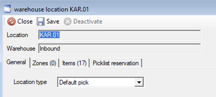 normale-locatie (geen mobile location) in het Inbound warehouse.