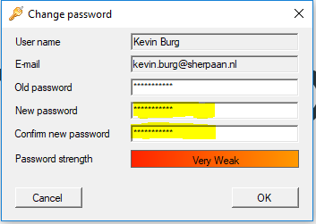 Password strenght laat zien hoe makkelijk het wachtwoord te raden zal zijn. Dit gaat van Very Weak naar Very Strong. Voor maximale beveiliging is het aan te raden om een Good tot Very Strong wachtwoord aan te maken.